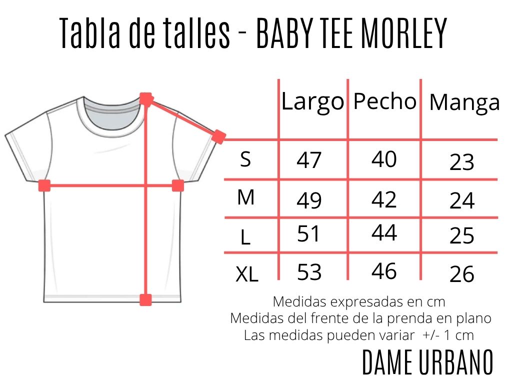 Nuestra remera Baby tee está confeccionada en morley de primera calidad, suave y resistente. Es perfecta para usar todos los días, ya sea para salir o para estar cómodo en casa.